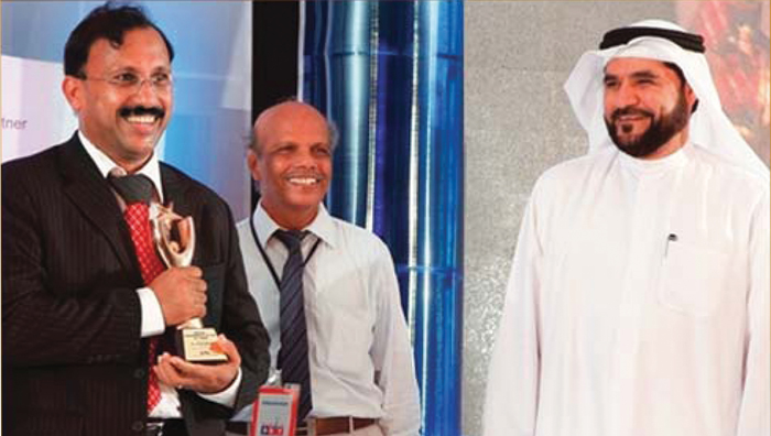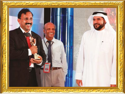 Er. Joseph Mathew, Chairman of Prime Group of Companies bestowed with Kerala's Emerging Enterpreneur of the year 2011 by Dhanam Business Sumit, from Dr. Abdul Rashid Chairman and CEO of Hamriya Freezone, Sharja, UAE