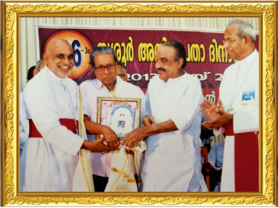 Er. S.J. Mathew Sankurikal, Chairman of Prime Group of Companies recieving Life Acievement Award for his service to Trichur Diocese in the field of Engineering.