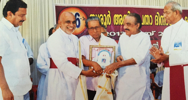 Er. S.J. Mathew Sankurikal, Chairman of Prime Group of Companies recieving Life Acievement Award for his service to Trichur Diocese in the field of Engineering.